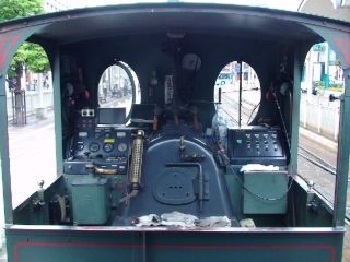 09:19 機関車には窓が無く、運転台を客車から見ることができます。 中央にボイラーのようなものがありますが、坊っちゃん列車の動力はディーゼルのはず。 ひょっとして…ダミーですか!? |