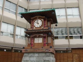 商店街の入口横にはこんな時計台がありました。 毎時0分にからくり人形劇が披露されるというものです。 |