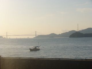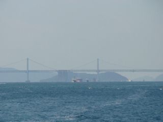 遠方に瀬戸大橋が見えてきました。 今まで渡った事しかありませんでしたが、こうやって離れて見てみると、やはり美しく、立派です。 |