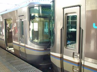 連結部を写しました。 写真でいうと、右が5000系で、左が223系になるんですよね。 両方ともほぼ同じ外観ですが。 |