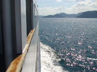 25分発の予定ですが、フェリーは未だに動きません。 フェリーだから仕方ないと思ってましたが、遅れに遅れ出航したのは45分。 これは日程を狂わされそうな予感(汗) |