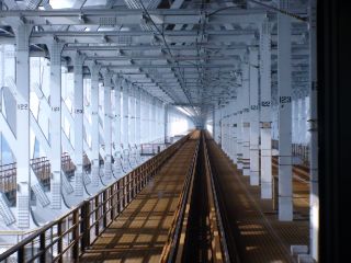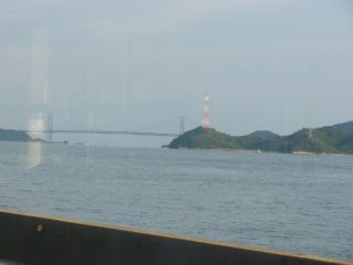 20分足らずで瀬戸大橋にさしかかりました。 ここら辺の前面展望は最高です。 |
