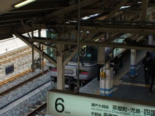 岡山に到着。フェリーと比べるとなおさら速いです。 223系の写真を撮ろうとするものの、色々と障害物が…。 |