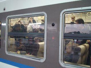 後続の列車が到着しました。 気になる混雑度ですが…立つ事は必至なものの、さっきよりは遥かにマシでしょう。 混雑回避、成功です。 |