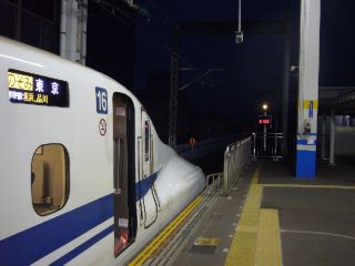 暗闇に向かおうとするN700系。 今回の旅は大阪ぐるりんパスを使うので、新幹線から始まります。 |