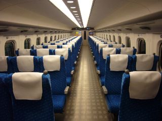 車内を写してみました。 始発ということで客の姿はまだなく、余裕で全景を撮れました。 |