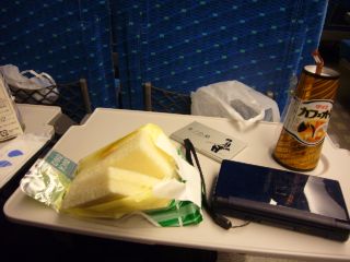 広島を出発し、朝食タイム。 サンドウィッチで済ませましたが、この旅行で500円以下の食事はおそらくこれだけ。 これ以降の食事はどれも名物なので…惜しみません。 |