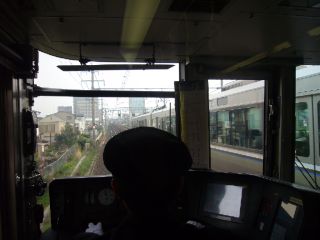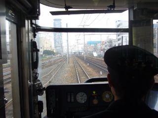 席が埋まっているので、空くであろう京都までは前面展望します。 友人とともに130km/hを体感しました。 |