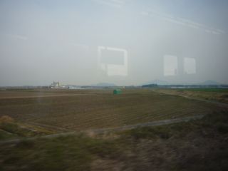 JR京都線の都会の景色から一転、田んぼの風景が広がります。 姫路、大阪、米原、敦賀… 新快速のテリトリーはホントに長い。 |