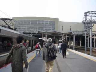 京都に到着。一気に客が降りていき、すんなり席が取れました。 |