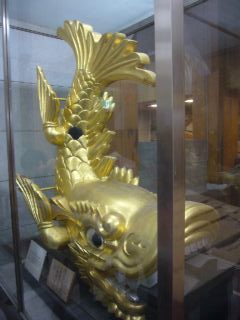 入ってすぐに、ショーケースの中に入った金のシャチホコが! 実物大でしょうか。大きいです。 |
