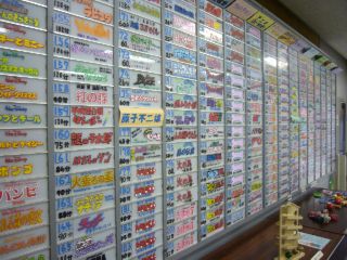 別の部屋にはビデオ鑑賞室があり、このように作品のタイトルがズラ~っと。 名作アニメばかりです。 |
