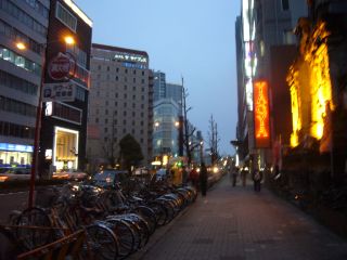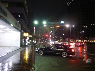 テレビ塔にレーザー光線が照射されているのが見えます。美しい。 この大通りにある「光の広場」から発光されているらしいです。 |