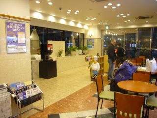 ロビーはこんな感じ。 まんまビジネスホテルのロビーですね。 事前にインターネット予約をしていたので、無事にチェックインも済みました。 |