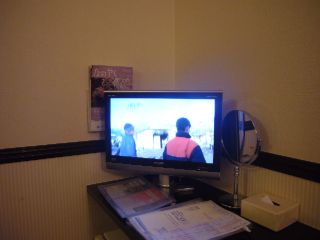 部屋の設備もなかなかです。 テレビも地デジ対応。 しかしワンセグは入らず、友人がワンセグで録ろうとしていたSASUKEが録れないという惨事に…気の毒だ。 |