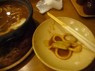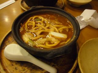 適当にレストラン街をあたってみると、「山本屋総本家」に行き着きました。 実は、"名古屋での夕食は味噌煮込みうどん"と決めていたのです。 栄の店が定休日だったあの落胆から、何とかたどり着けました。 |