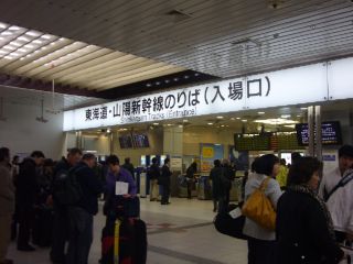 新大阪駅です。 友人が肉まんを買っている間に空席情報を見ていたのですが、自分たちの乗るひかりレールスターの指定席はすでに×表示。 恐るべしレールスター! |