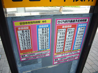 14:17広告の場所へは、駅に直接乗り入れている廿日市市のループバス「さくらバス」を使って向かいます。 ただ、所定の時間になってもなかなか発車せず、時間のロスとなってしまいました…。 |