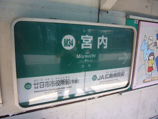 16:00次の地御前は広告無し。 その次の阿品東も広告無し。 そのまた次の広電阿品の広告には行く予定でしたが、宮内での未曽有の疲労により断念しましたorz 広電宮島口にも広告は無いため、広告巡りは先ほどの広告で終了となりました。 |