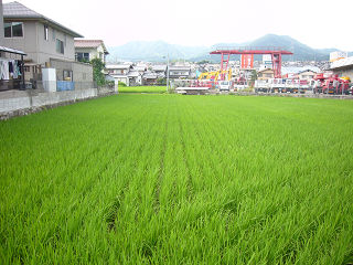 15:01時期的に暑いので、首に塗ったメンソールゲルも効力を失い、汗がタラタラとしたたります。 こう暑いと歩く時間が余計に長く感じる…。 そんな中で見る一面緑の田んぼはいと美し。 |