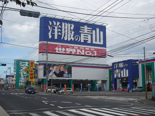15:50駅から広告場所へ向かう途中、見えてきたのはこのような光景。 明らかに青山vsはるやまの構図ですね(笑) ここでは、広島(福山)に本社を置く青山の方が人気は上か? |
