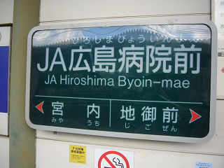 15:55宮内から電車に乗り、次はJA広島病院前です。 「胃カメラ、大腸カメラの、たに内科胃腸科はこちらが便利です。」 |