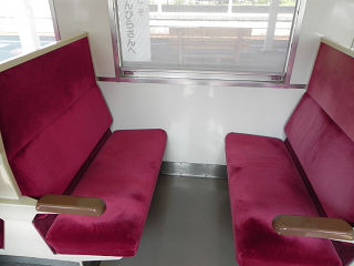 14:01車内の冷房効率を上げるため、扉は半自動になっていました。 ボタンを押して扉を開けます。 この感触、たまらん。 |