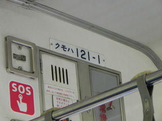 15:07車内を見上げてみると気付きました。 この車両は121系のトップナンバー! previoが教示してくれました。 |