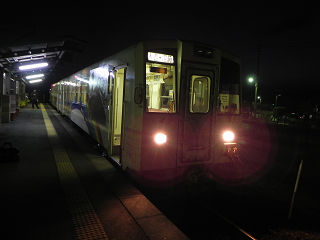 18:11高速バス&在来線の長時間乗車でだいぶ疲れがきてますが、まだまだ移動は残っています。 第三セクター・くま川鉄道に乗車します。 |