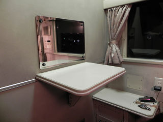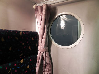 19:42部屋には、外への窓はもちろん、通路側の車窓を見るための窓もあります。 客に見られないためのカーテンもちゃんとあります。 |