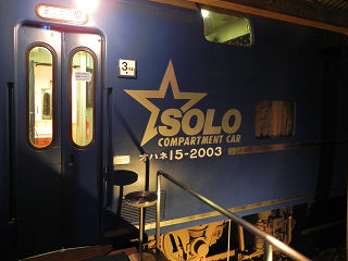 19:34ブルートレインたらぎは、寝台特急「はやぶさ」に使われていた客車をそのままホテルとして使用した施設です。 乗り鉄歓喜。 1号車がB寝台、2号車がフロント・ロビー、3号車がソロという構成になっています。 我々が泊まったのはソロでした。 |