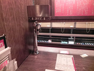 13:57注文の際は、あらかじめ置かれた「麺の硬さ」「辛さ」「トッピング」などを問う用紙に自分の好みのテイストをマークします。 それを店員が回収した後、希望通りのラーメンが出来上がりです。 机上には寿司屋のごとく飲料水の蛇口まであります。 |