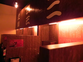 14:04ラーメン来ました。 味は旨辛! スープの上にのった辛いタレが効いてます。 また、食事中はテーブルと厨房の間がすだれで仕切られます。 三方を壁に囲まれながら食すこの感覚… ひたすらラーメンに集中できるのでなかなか好みです。 |