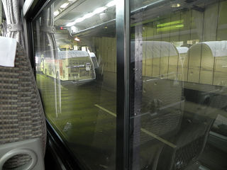 14:55広福ライナーが到着しました。 バスがこんな近くにいるのにガラス1枚隔てているというのはどことなく新鮮。 |