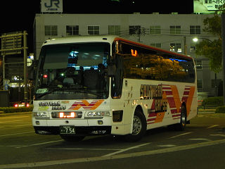 22:32今回お世話になる夜行バス「サザンクロス」がバスプールに入ってきました。 |