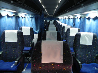 22:35バスはその後乗り場に到着。 外から見ると至って普通の高速バスですが… |