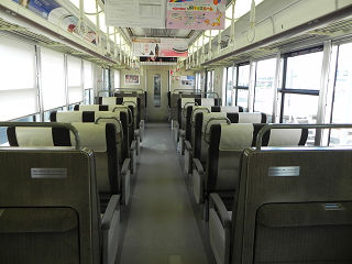 14:05この新快速は播州赤穂行きで、私たちは終点まで乗ります。 姫路で客の大半が山陽本線に乗り換え、ご覧の通り車内はガラガラに。 |