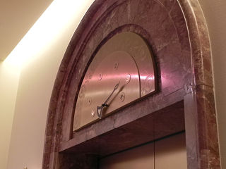 19:20 エレベーターは、フロントへ上がるものと客室へ上がるものとで2つに分かれています。 写真は前者ですが、何ともレトロチックな階表示となっています。 |
