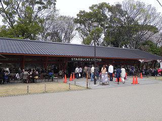 11:08公園内に洒落たスタバがありました。 ここも人だらけ。 |