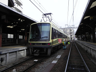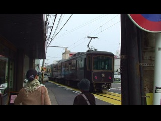 13:58後ろには1200形が連結されていたようです。なので4両編成。 国内最後(厳密には特殊狭軌を除く)の吊り掛け電車を味わいます。走行音もバッチリ収録します。 |