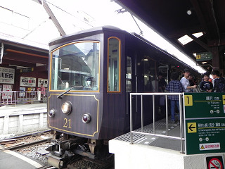 14:12向かいのホームにはレトロ調塗装の20形が。 江ノ電には様々な車両があります。 |
