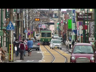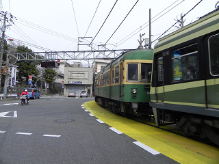 14:25いきなり鎌倉行きの電車が通過していきました。 浮いた時間でこの併用軌道区間を少し見学します。 |