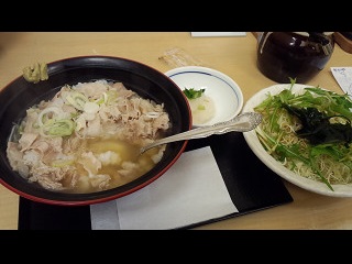 10:21ここで朝食。 「かつや」というトンカツ専門店ですが、朝のみ提供されている『肉茶漬け』をいただきました。 |