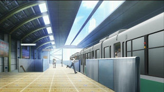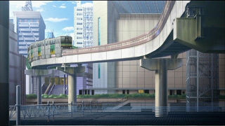 17:00さぁ、最後は超電磁砲だけでなく禁書目録でも多く登場するこの画角。 肝心のモノレールの登場に間に合いました。少々待ちます。 |