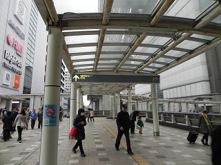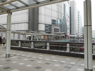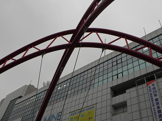 16:47ここは見つけにくかった。 立川駅前のペデストリアンデッキで何とか発見。 曇天で分かりづらいですが現実の方は赤色の鉄骨です。 |