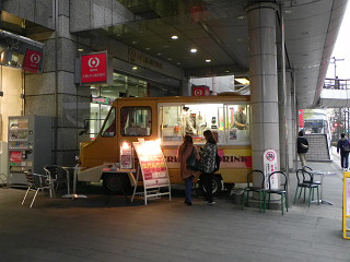 16:41聖地巡礼も終盤。 ここで次の舞台に向かう途中、移動販売車を見つけました。 これが1話で出てきたクレープ屋…ということにして良いでしょうか?(笑) |