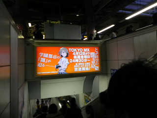 17:45秋葉原に到着。 エスカレーターの広告には、な、なんと、超電磁砲2期の広告がこんなにも堂々と!! いきなり流石です。 |