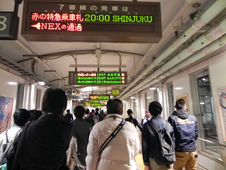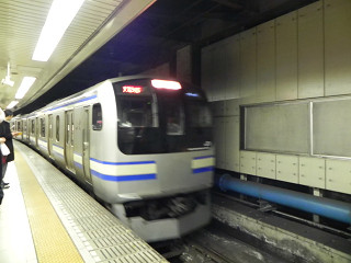 19:13東京駅地下にある総武快速線のホームに来ました。 同じ地下ホームでも京葉線よりは他の路線から乗り換えしやすいです。 |