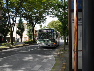 13:36乗ったバスは銀閣寺方面行きだったけど、降りたのは"上終町京都造形芸大前"というごく普通のバス停。 フリーエリアの端っこだ。 |