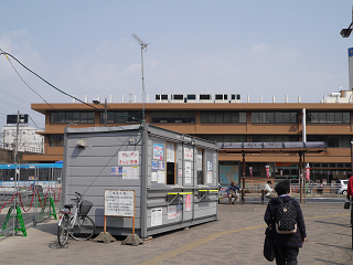 10:57駅前にあるバスのチケット売り場で一日乗車券を買いました。 一時的なものなのか知りませんが何故かプレハブ小屋です。 |